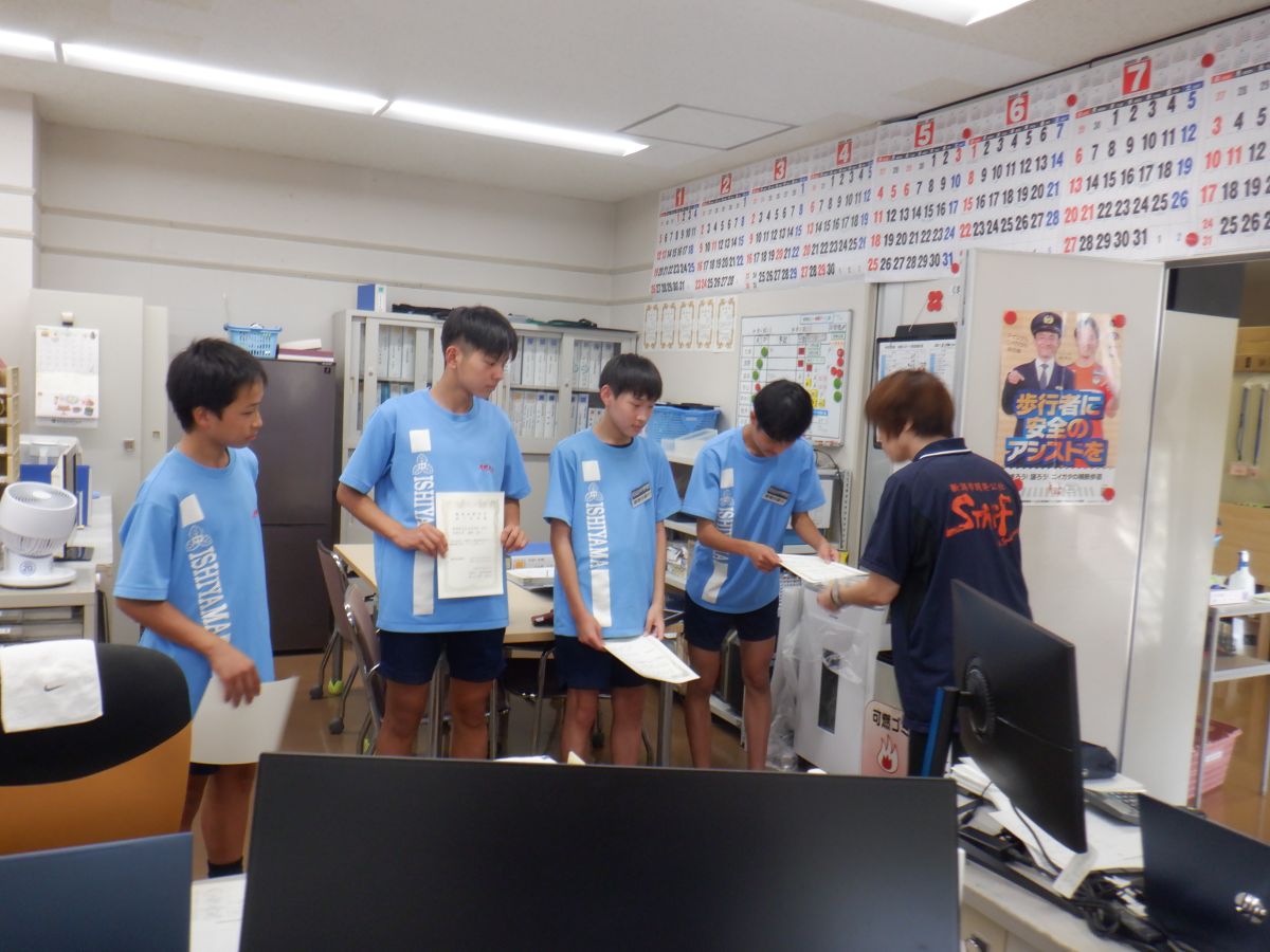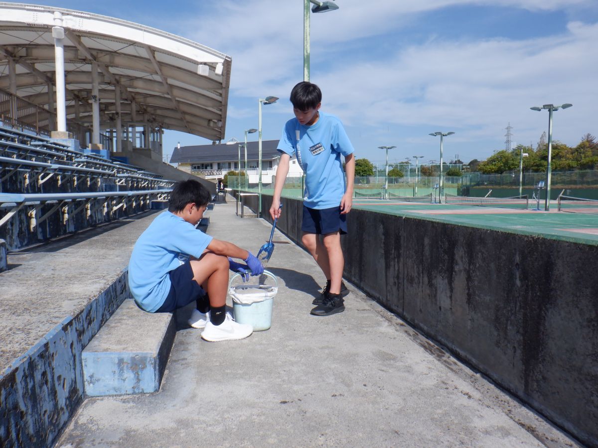 今月初め、石山中学校の2年生4名の生徒さんが当庭球場に職場体験に来てくれました。