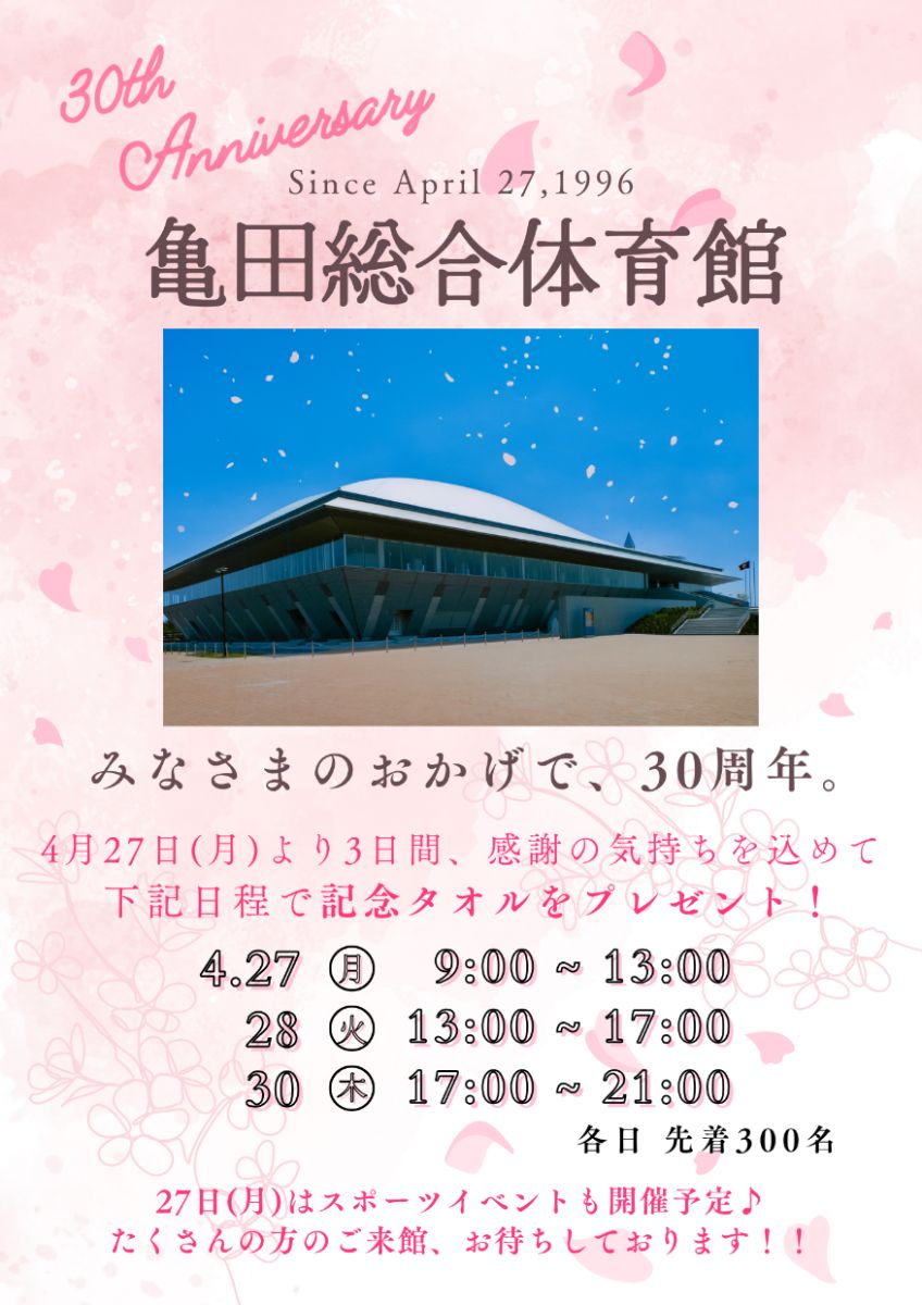 4月27日(月)で、亀田総合体育館が30周年を迎えます🌸