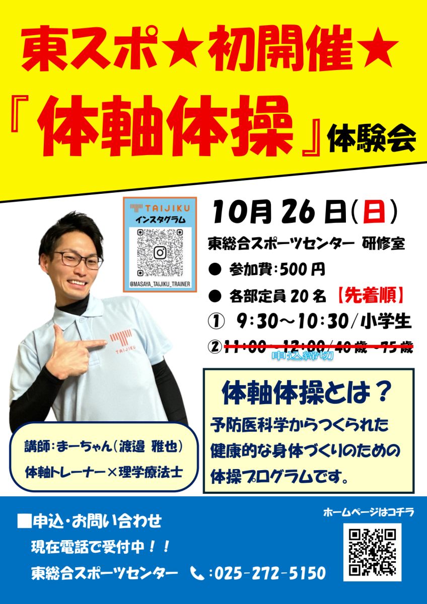 2025/10/15【イベント】10/26(日)『体軸体操』体験会のお知らせ(小学生募集)