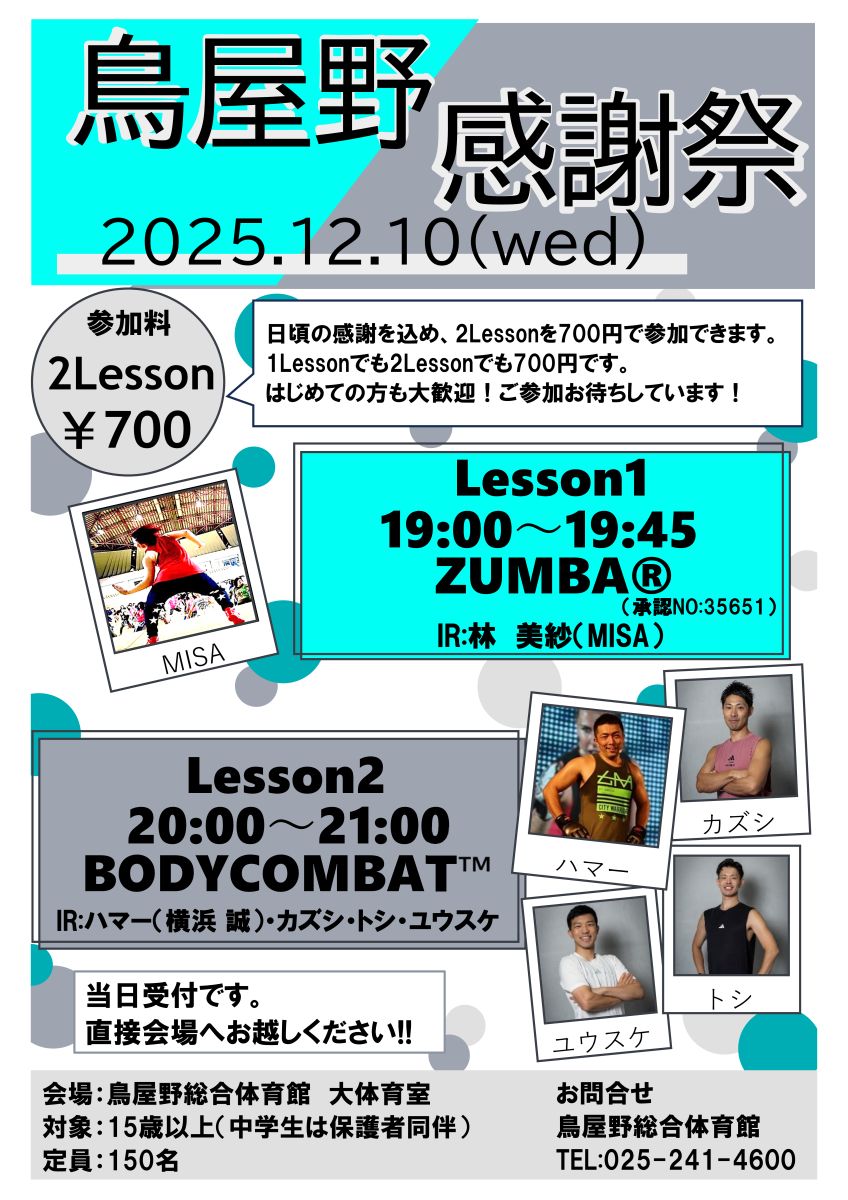 Tel:025-241-4600 鳥屋野体育館へ    ご参加お待ちしております♬
