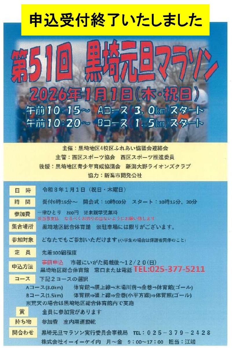 2025/12/08【黒埼】第51回黒埼元旦マラソンin2026 申込受付終了のお知らせ