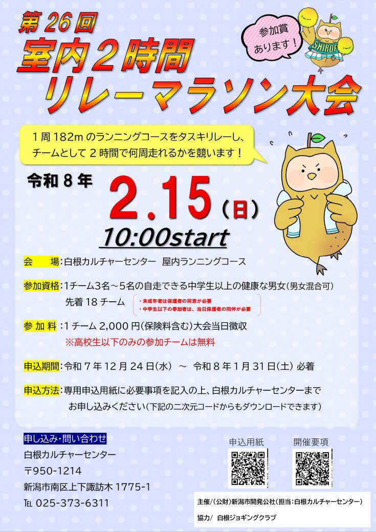 2025/12/18第26回 室内2時間リレーマラソン大会開催のお知らせ