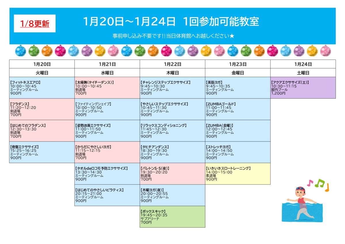 2026/01/18【1/20~1/24】スポーツ教室1回参加可能教室のお知らせ