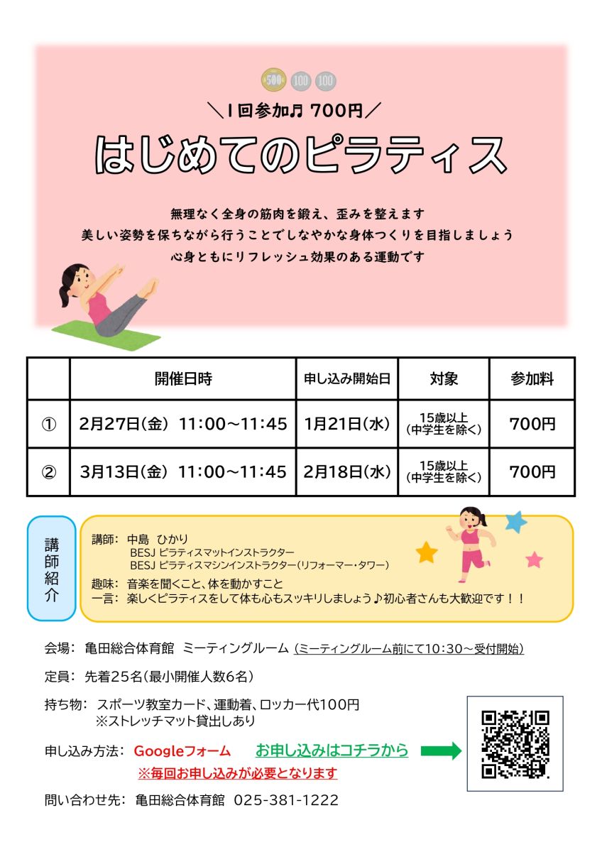 2026/02/03【2月】『はじめてのピラティス』お申し込み受付中♬