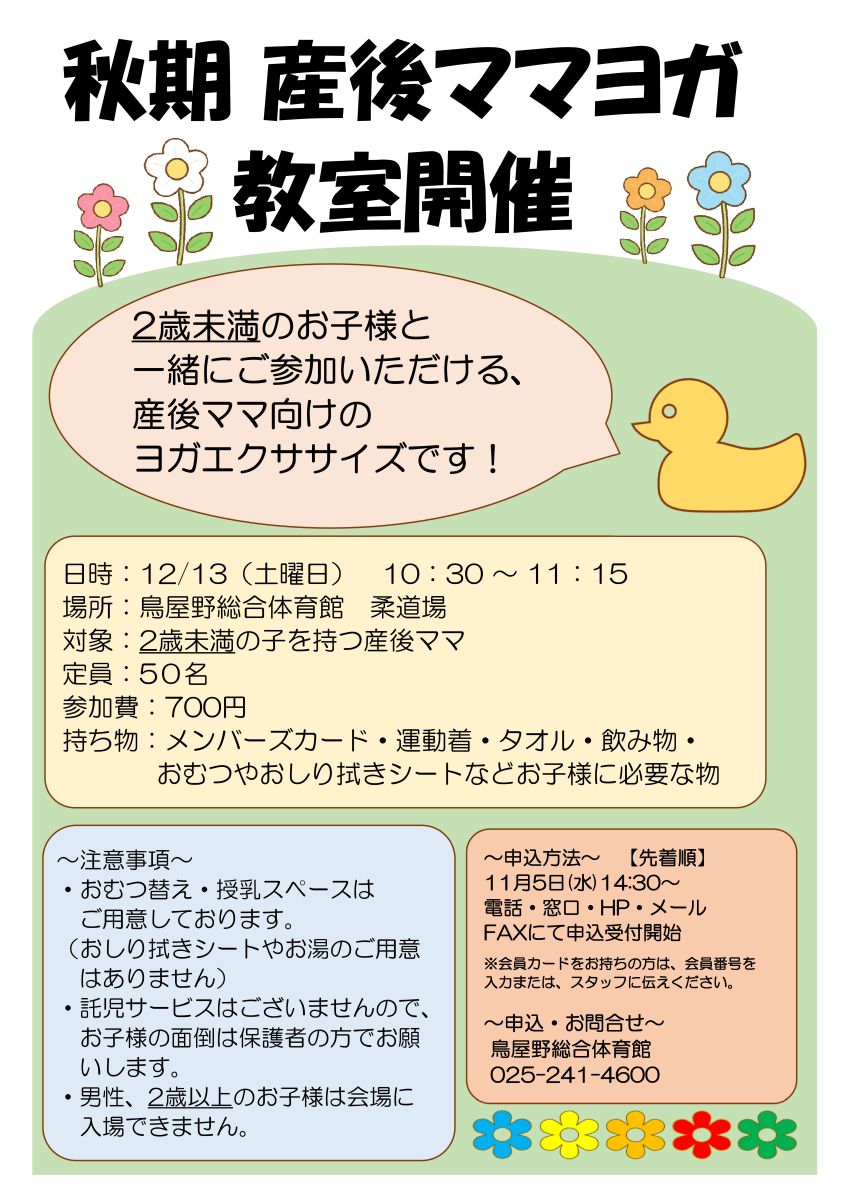 2025/11/04秋期『産後ママヨガ教室』開催のお知らせ