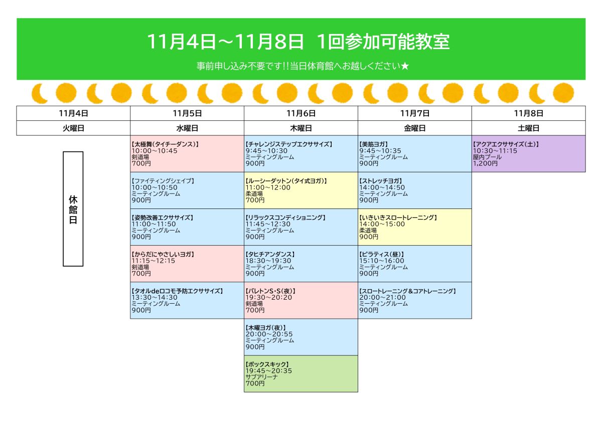 2025/11/02【11/4~11/8】スポーツ教室1回参加可能教室のお知らせ