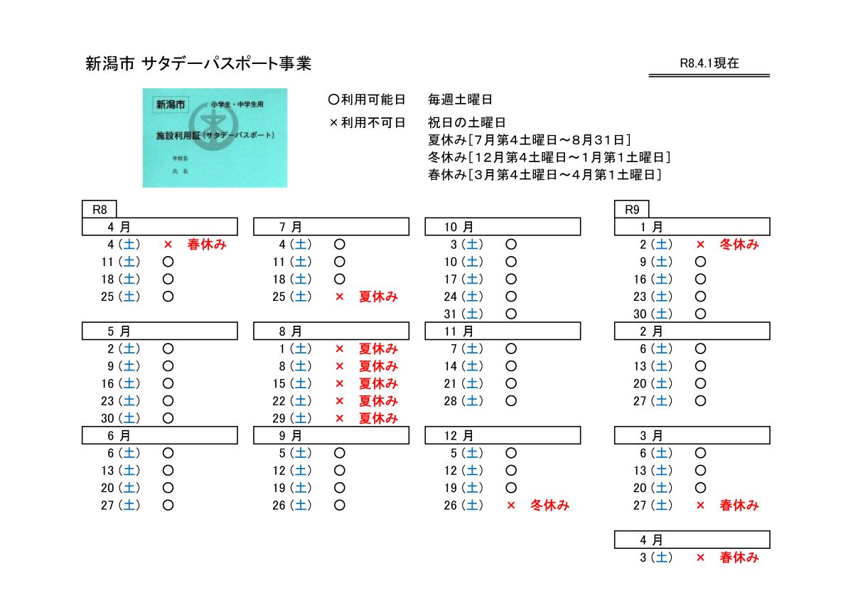 - サタデーパスポートは、小・中学生を対象とした「施設利用証」です。