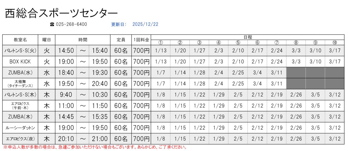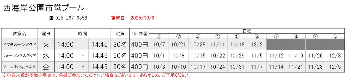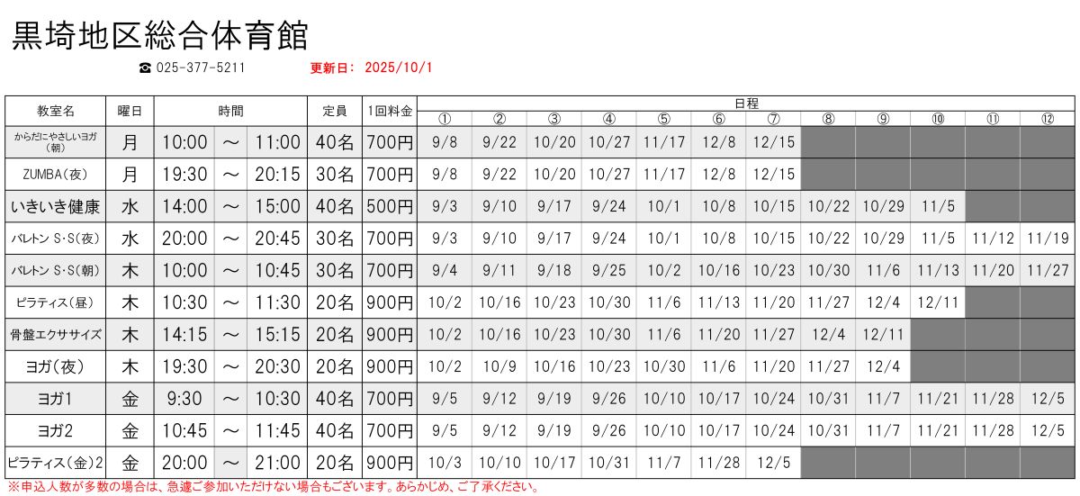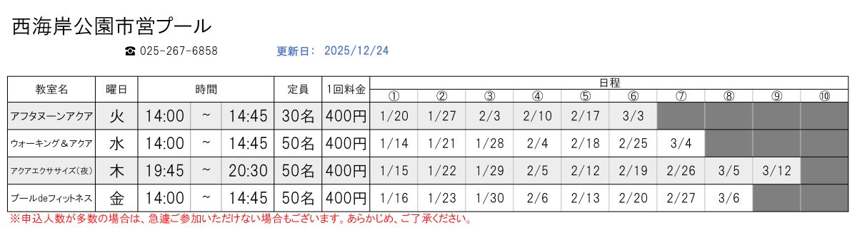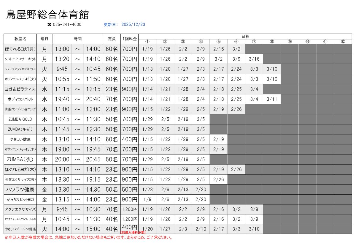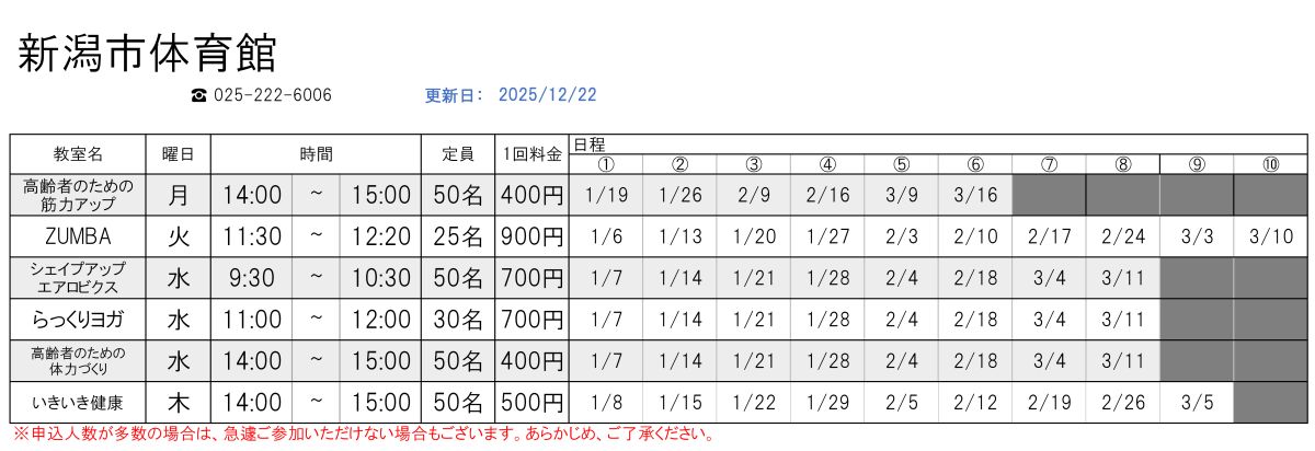 鳥屋野総合体育館、新潟市体育館、西海岸公園市営プール
