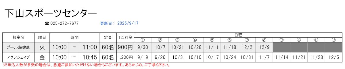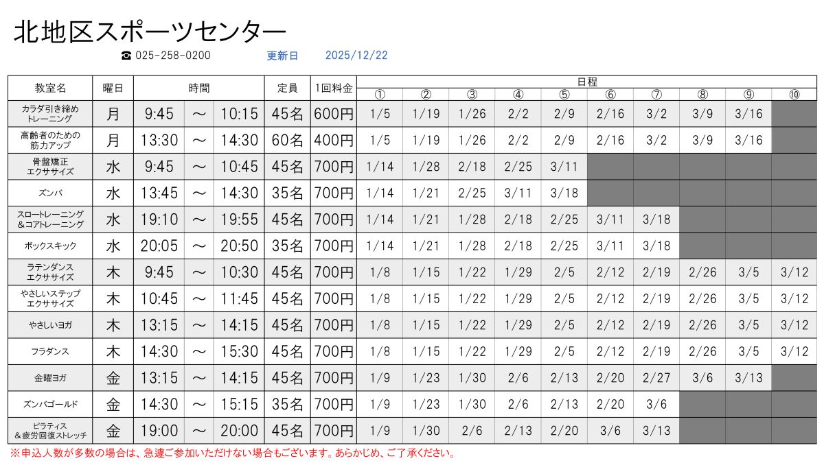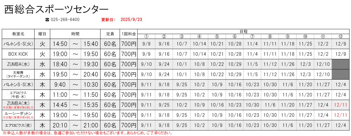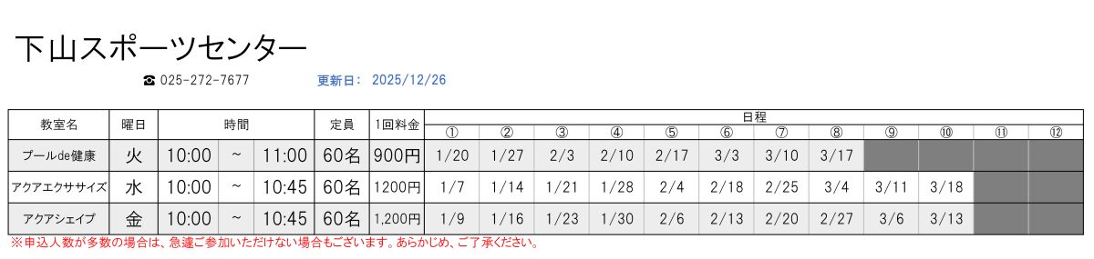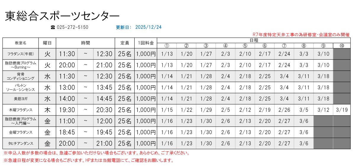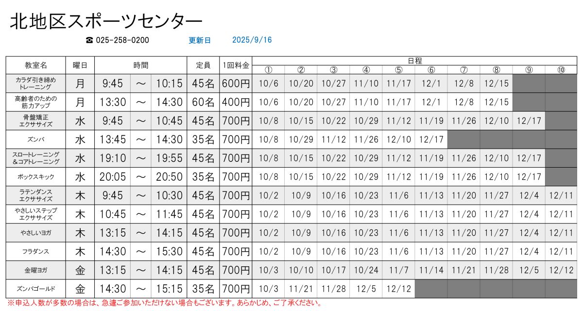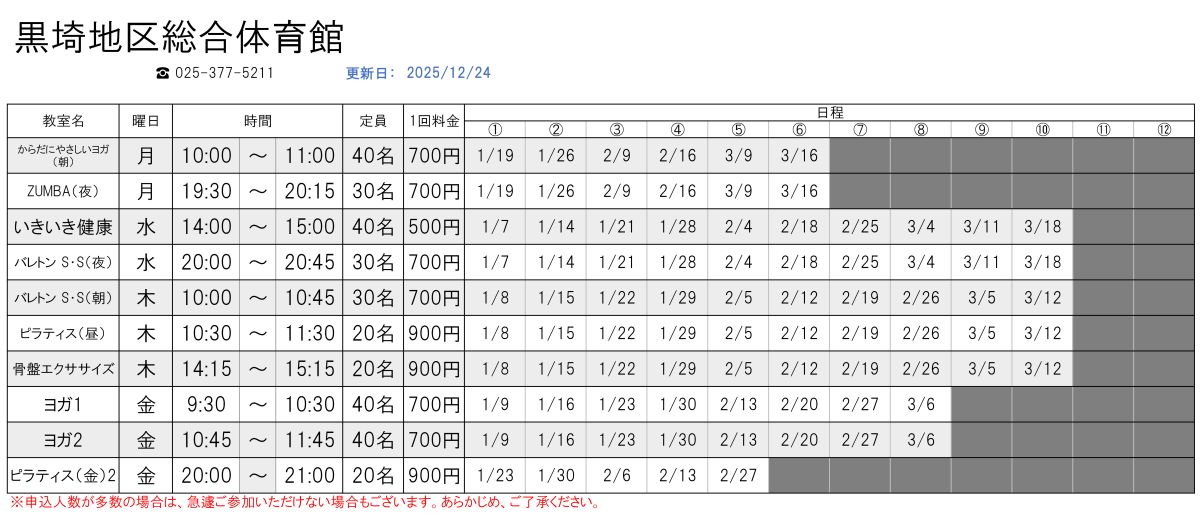 鳥屋野総合体育館、新潟市体育館、西海岸公園市営プール