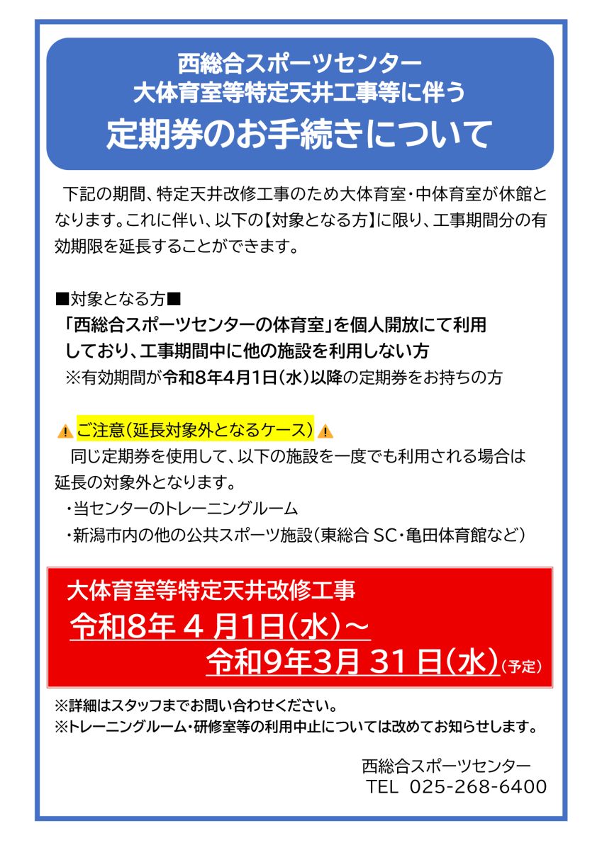 新潟市が設置した「西総合スポーツセンター」は、指定管理者である 「公益財団法人新潟市開発公社」が管理運営を行っています。 |