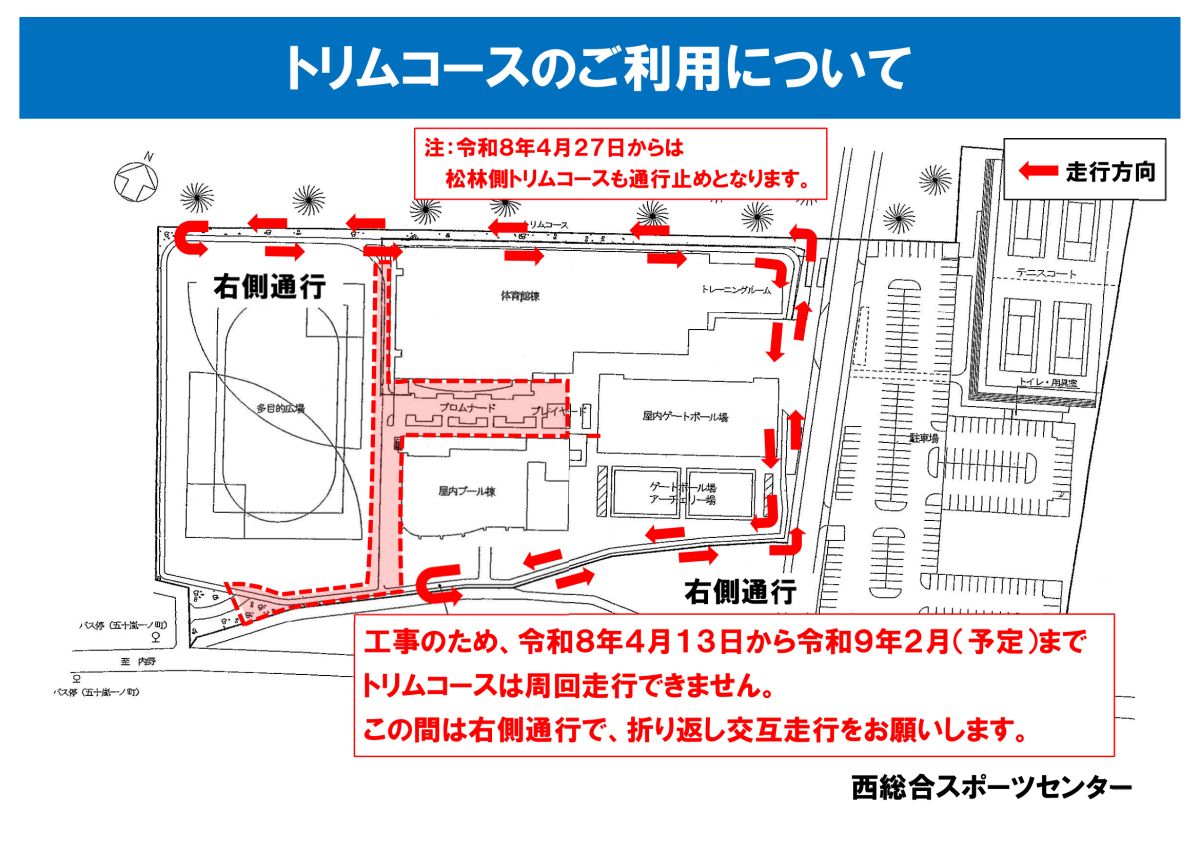 また、トリムコースにつきましても周回利用ができません。