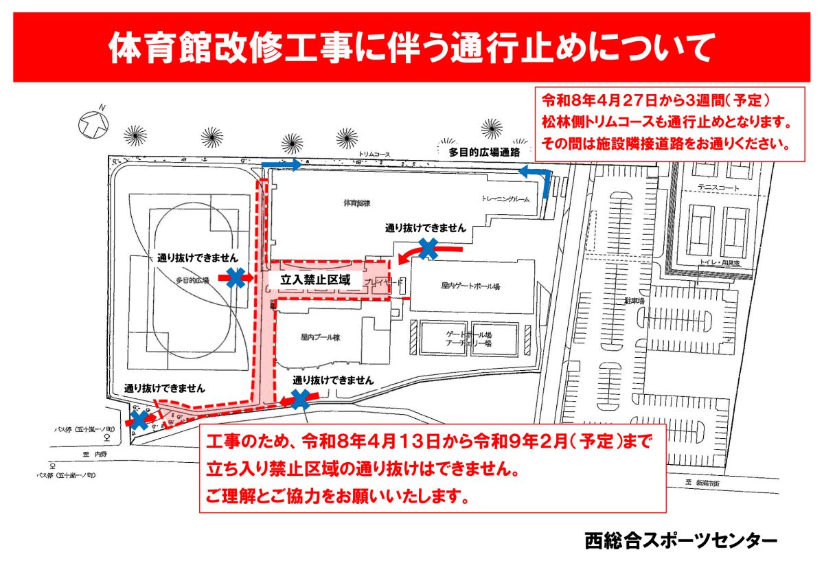 2026/04/13体育館改修工事に伴う通行止めについて